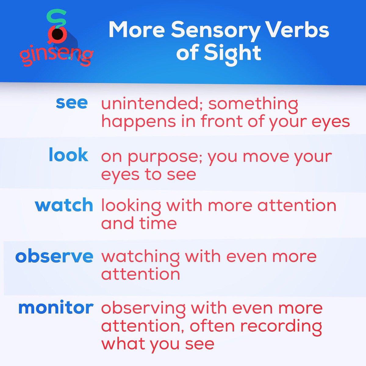 More Sensory Verbs Of Sight Learn English Verb Sensory